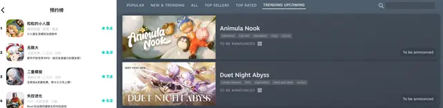 这款游戏的热度从去年首曝就开始一路狂飙,上线当天全平台热度直接突破3000万,抖音、小红书相关话题刷屏全网,随手一刷都是玩家的安利和期待。首曝仅两周,全网热度就轻松破亿,TapTap双端霸榜预约榜第一长达17天,Steam新游榜更是连冠 7 天,全球预约量现在更是突破600万大关!